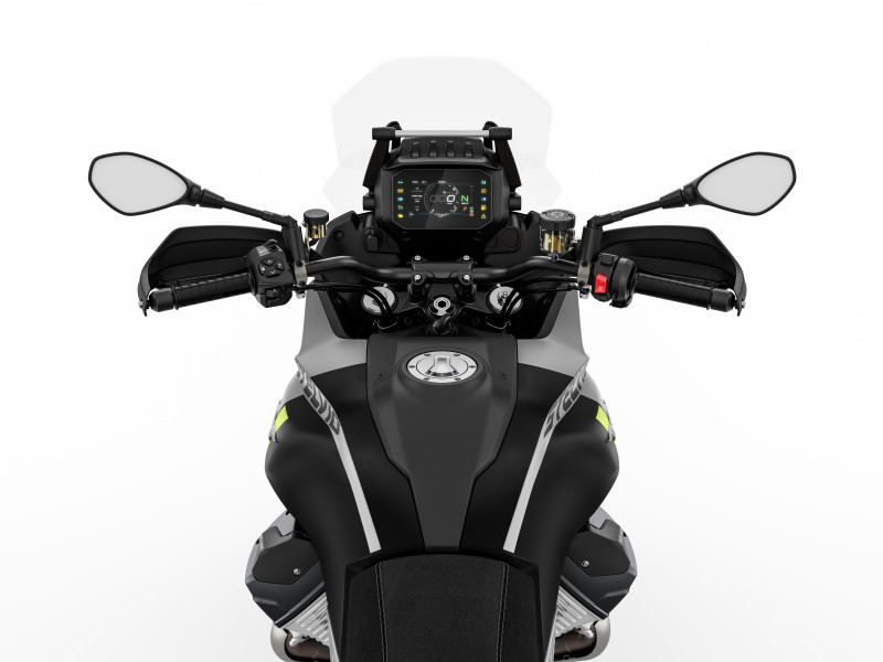 Chaque élément de la Stelvio reflète l'héritage Moto Guzzi, de son moteur V-Twin "Compact Block" à son gras oscillant unilatéral unique, en passant par ses feux de jour en forme d'aigle. Chaque détail est pensé pour donner vie à cette moto, solide, compact et puissante.